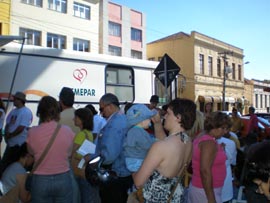 Durante toda a manhã do domingo, 22, o ônibus do HEMEPAR – Centro de Hematologia e Hemoterapia do Paraná – esteve estacionado ao lado da Igreja do Rosário no Largo da Ordem e num trabalho de parceria com a UFPR conseguiu efetuar o cadastramento recorde.