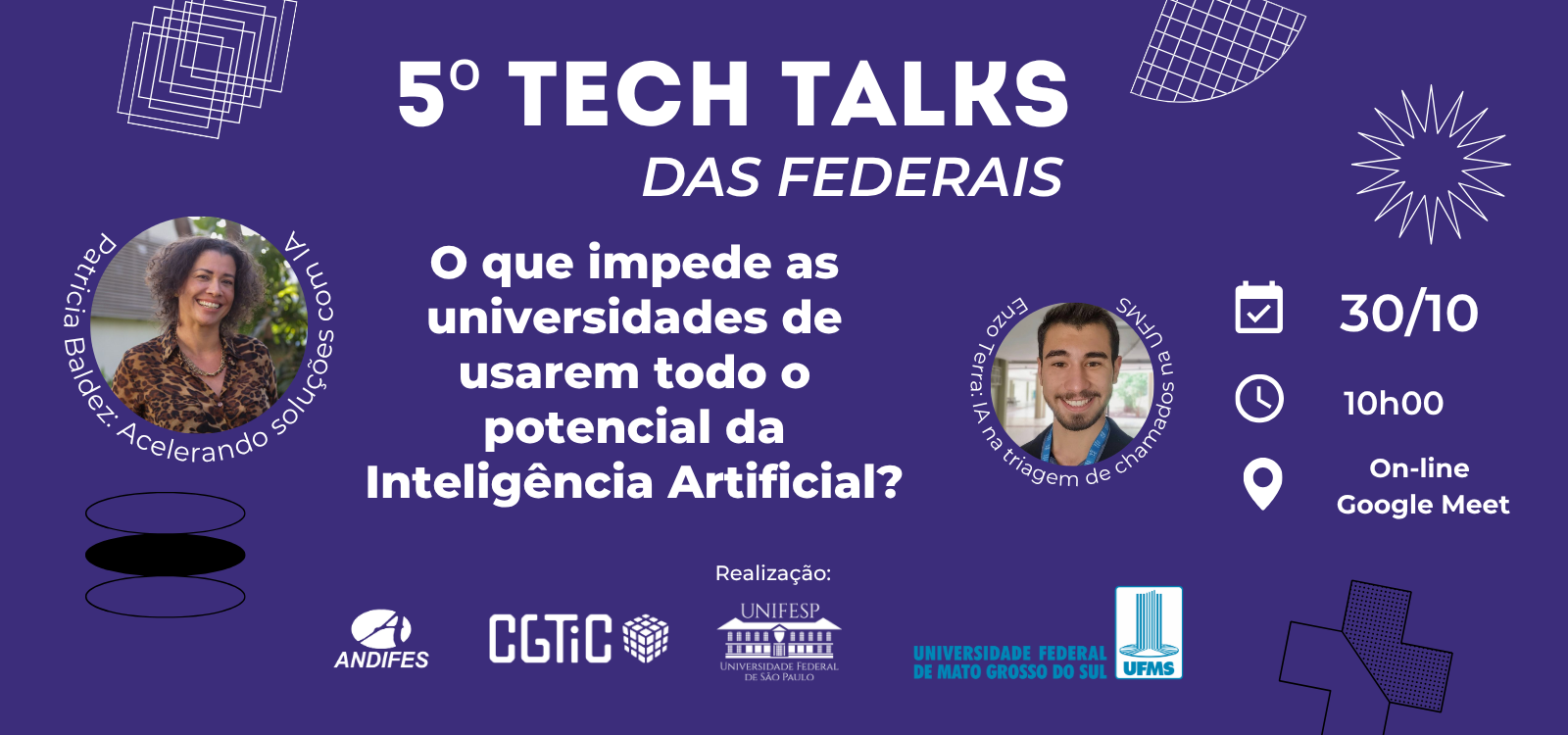 A 5ª edição do Tech Talks das Universidades Federais reuniu, no dia 30 de outubro, mais de 600 profissionais de tecnologia e gestores de instituições de ensino superior de todo o país para discutir os desafios e oportunidades do uso da Inteligência Artificial (IA) no setor público. O evento foi coorganizado pela Universidade Federal de Mato Grosso do Sul (UFMS) e consolidou-se como um dos principais fóruns nacionais sobre transformação digital.