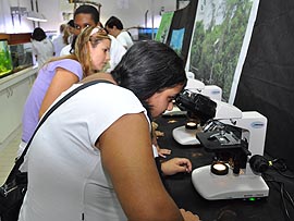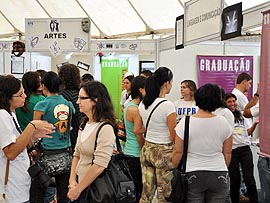 As amigas Yasmin Andruchevica e Amanda Bouvarades dos Santos estão interessadas nos cursos de fisioterapia e gestão ambiental. Yasmin, que já terminou o ensino médio, vai prestar vestibular para fisioterapia pela segunda vez. “É a primeira vez que venho à Feira, conheci o curso de gestão ambiental e também fiquei interessada”, explicou a vestibulanda.