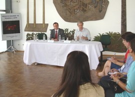 Carlos Moreira e Valdo Cavallet, coordenador geral do Núcleo de Concursos, reuniram a imprensa na tarde de segunda-feira, dia 10, para falar do clima de tranqüilidade que reinou em todos os dias das duas fases do Vestibular. Moreira destacou, que enquanto muitos concursos feitos em outras instituições ou estados, vêm sofrendo fraudes e passando por dificuldades, o Vestibular da UFPR mostrou mais uma vez sua credibilidade.