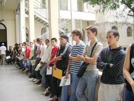 Em outra sala são tiradas as fotografias para a confecção da carteirinha do estudante, que dará direito ao acesso ás bibliotecas e restaurantes universitários. E por último, os calouros são convocados a preencher um formulário com 35 questões, que irá definir o perfil social e econômico dos estudantes da UFPR. Os dados vão nortear as novas políticas para esses jovens, destacou a professor Miriam Angelucci, da Pró-Reitoria de Assuntos Estudantis. Os que optaram pelas cotas raciais tem ainda uma outra etapa, que é a entrevista sobre a sua origem. Uma banca formada por representantes da Universidade e dos movimentos negros conduz a conversa.