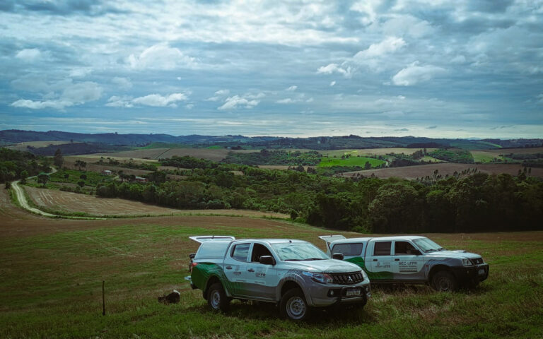 “A gente sabe onde precisa chegar, só precisa descobrir como chegar até lá”, explica a geógrafa Marianne Oliveira, pesquisadora do Laboratório Geoprocessamento e Estudos Ambientais (Lageamb) da Universidade Federal do Paraná (UFPR), enquanto conversa com colegas sobre o trabalho em campo. Entre risadas, eles comentam sobre pneus que furam, carros que atolam, encontros com animais, sol forte e chuva repentina. O engenheiro cartógrafo e bolsista do Lageamb, Pedro Valentim, relembra que essa rotina é necessária para que o georreferenciamento seja feito com validade jurídica e precisão: “Percorremos toda a fronteira do terreno, conferindo cada limite. É cansativo, mas é o que garante a segurança do resultado”.