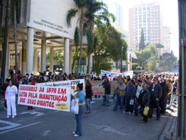 Iniciada em frente ao Teatro da Reitoria, na rua XV de Novembro, a passeata foi avaliada pela direção do Sinditest – Sindicato dos Trabalhadores em Educação do Terceiro Grau Público de Curitiba, Região Metropolitana e Litoral do Estado do Paraná, como positiva. ‘Reunimos cerca de 500 pessoas e tivemos a adesão de outros servidores públicos. Além disso, conseguimos mostrar para a população a nossa pauta de reivindicações, ligadas inclusive com a melhoria de atendimento para a própria sociedade, como é o caso das atividades no Hospital de Clínicas’, esclarece José Carlos Belotto, presidente do Sinditest.