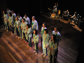 Eles têm de 19 a 56 anos. Mas todos parecem crianças se divertindo no palco com os arranjos e movimentos cênicos do espetáculo Musicae Brasilis, do Grupo de MPB da UFPR, que se apresentou ontem, às 16 e 19 horas, no Theatro Municipal de Antonina. A apresentação é composta de músicas que cantam o Brasil, intercaladas por textos ficcionais que comentam as músicas, organizados de forma a ter coerência mas sem ordem cronológica. Veja mais fotos aqui.