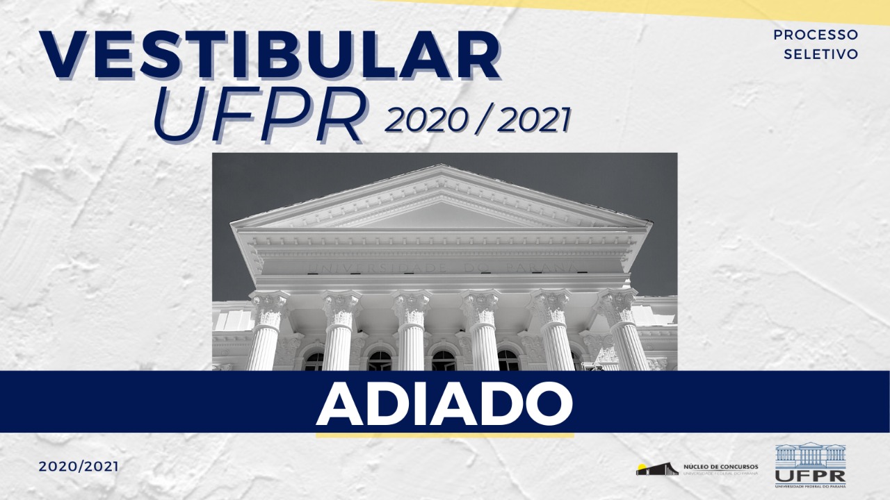 O Núcleo de Concursos da UFPR adiou a aplicação da prova da 1ª fase do Vestibular, que seria realizada no dia 28 de março. O motivo é o agravamento da pandemia de coronavírus e a crise sanitária vivida em Curitiba e em todo o estado do Paraná.