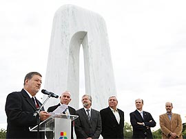 O monumento foi criado pelo artista plástico argentino naturalizado brasileiro Alfi Vivern. ‘Foi um momento dramático juntar os dois blocos’, disse.