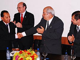 Luiz Fernandez (esq) é cumprimentado por Marcelo Aranha e aplaudido por Zaki Akel e Fernando Marinho