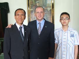 Mestre Kang é árbitro dos Jogos Pan Americanos nesta modalidade e visitou o reitor antes de viajar para o Rio de Janeiro.