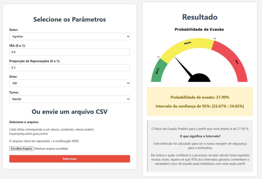 – Diferencial: O desenvolvimento técnico dos modelos foi feito integralmente em software (R e Python) com códigos e um conjunto de dados “toy example” público em https://github.com/cecd-ufpr/evasao.