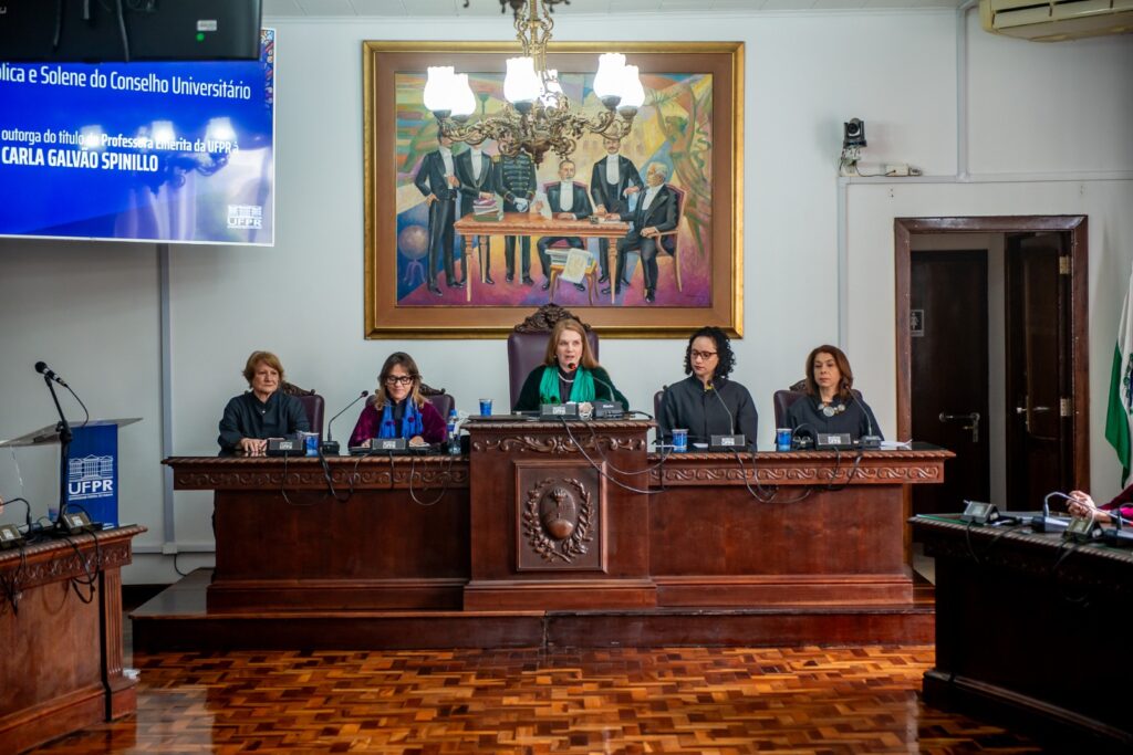 A cerimônia foi realizada na sala do Conselho Universitário da UFPR na segunda-feira (8), contando com a presença das professoras Graciela Inês Bolzón de Muniz, Kelli Cristine Assis da Silva Smythe, Regiane Regina Ribeiro e a vice-reitora da UFPR, Camila Girardi Fachin na mesa. Amigos, familiares e membros da comunidade acadêmica estiveram presentes.