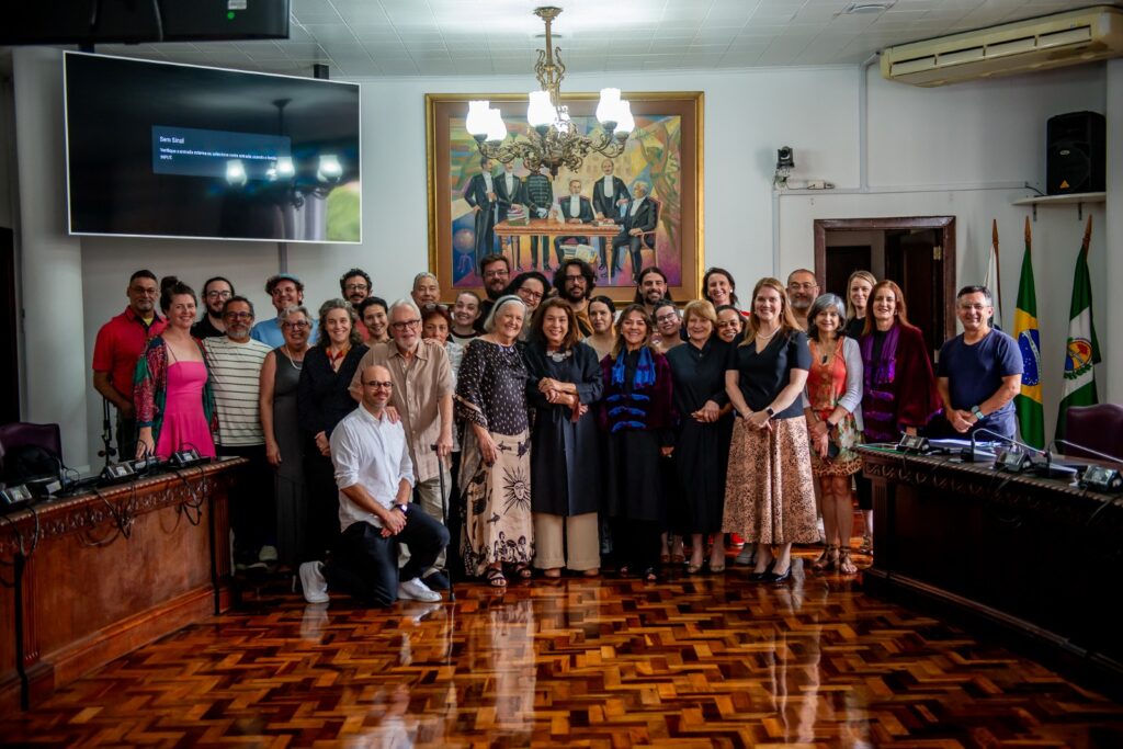 Em seu discurso, a professora ressaltou estar na presença de mulheres na mesa e o fato de o curso de design da UFPR, a pós-graduação e a criação do SACOD terem sido pensados por mulheres. Ela lembra que foi a oitava mulher, entre 99 homenageados na história, a ser professora emérita na UFPR. “Assim, eu recebo o título de professora emérita no meu lugar de fala como designer, professora, pesquisadora, mãe e mulher”.