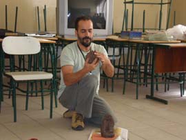 Um dos contatos com a materialidade trabalhados foi com o barro. Cada oficinando recebeu meio quilo de argila – a primeira expressão do homem depois da pedra lascada foi através da argila, explica Júlio – para produzir sua arte. “O pensamento vai conduzir a ação”, propõe o professor, ao explicar a possibilidade de se apropriar de um objeto do cotidiano para expressar emoção e sentimento.
