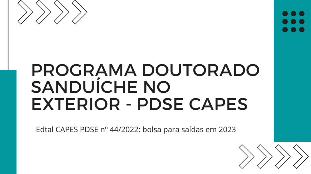 Acesse as informações sobre o Programa Doutorado Sanduíche no Exterior – PDSE 2022 para saídas em 2023 em https://ufpr.br/propg/siprop/editais-e-oportunidades/pdse-2023/