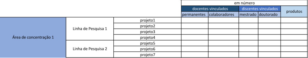 A título de exemplo, modelo de áreas/linhas estruturado:
