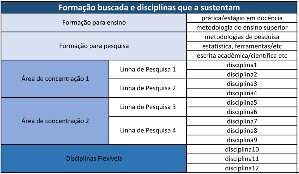 A título de exemplo, modelo de grade curricular estruturada: