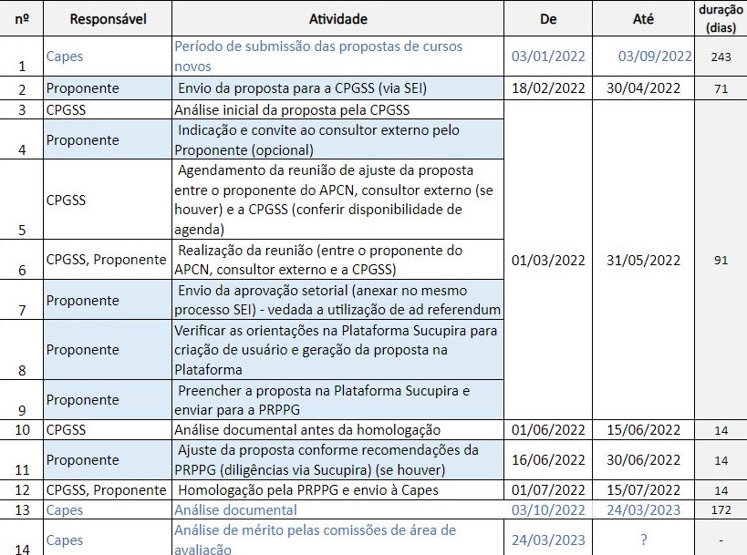 - Portaria CAPES nº 150/2022 – Altera o calendário da CAPES para submissão e análise de propostas de cursos novos – APCN/2022.