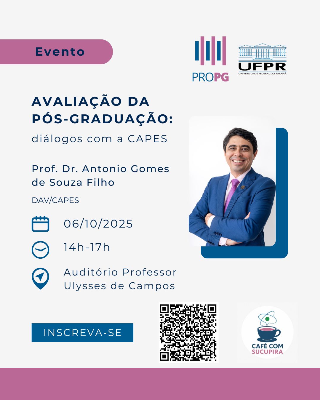 - Evento 06/10: Diálogos com a CAPES – com Prof. Antônio Gomes de Souza Filho, Diretor de Avaliação da CAPES
