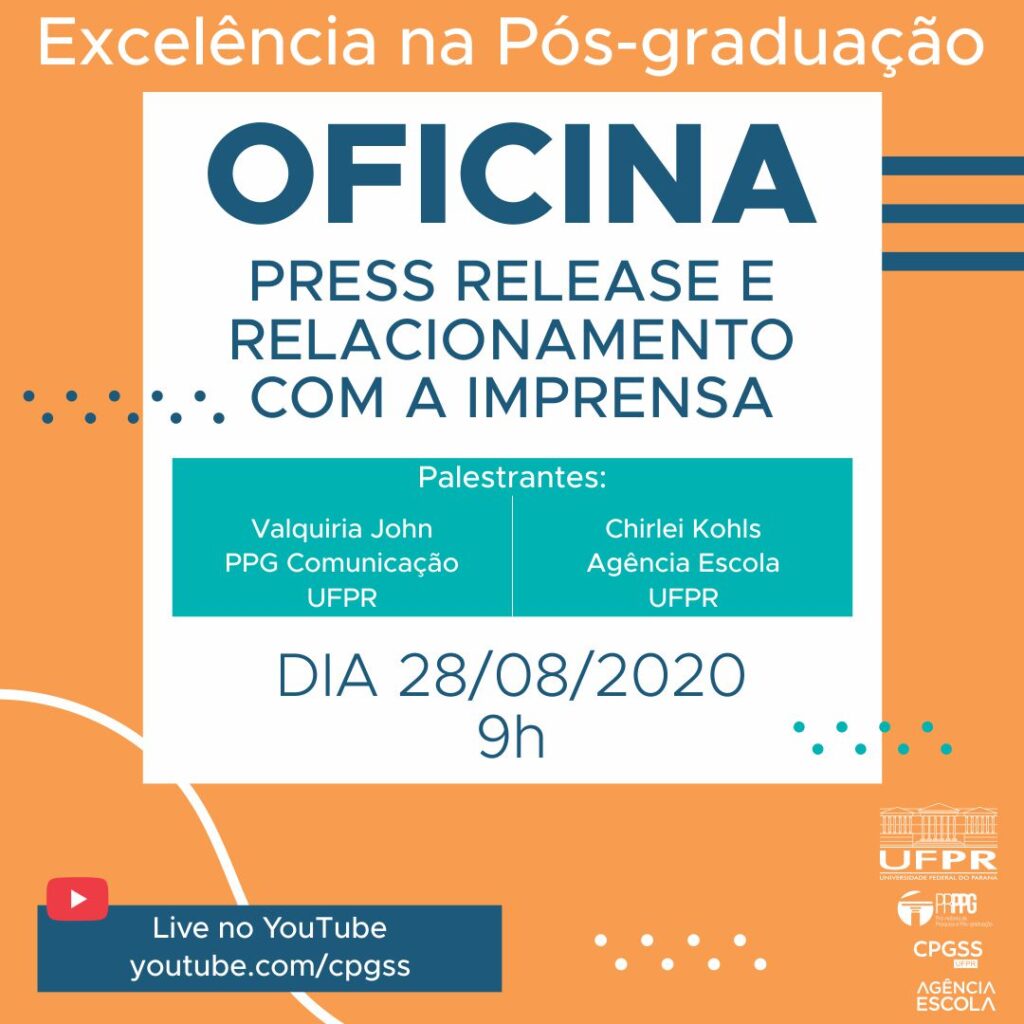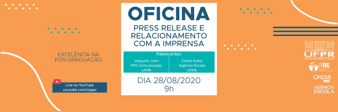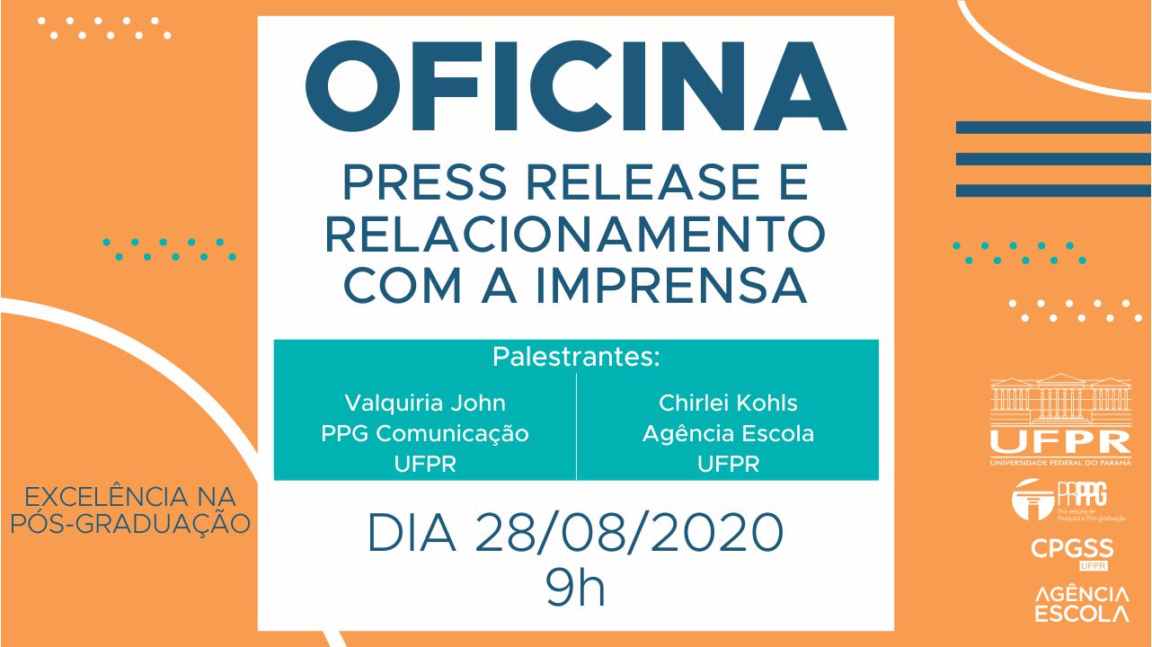 28/08/2020Oficina: Press ReleaseValquiria John – PPG Comunicação – UFPR e Chirlei Kohls – Agência Escola – UFPR
