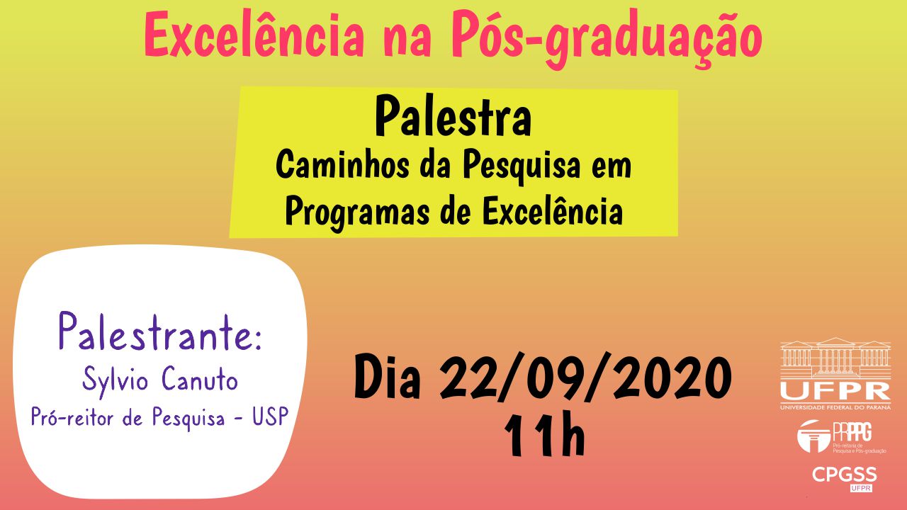 22/09/2020Palestra: Caminhos da Pesquisa em Programas de ExcelênciaSylvio Canuto – Pró-reitor de Pesquisa – USP