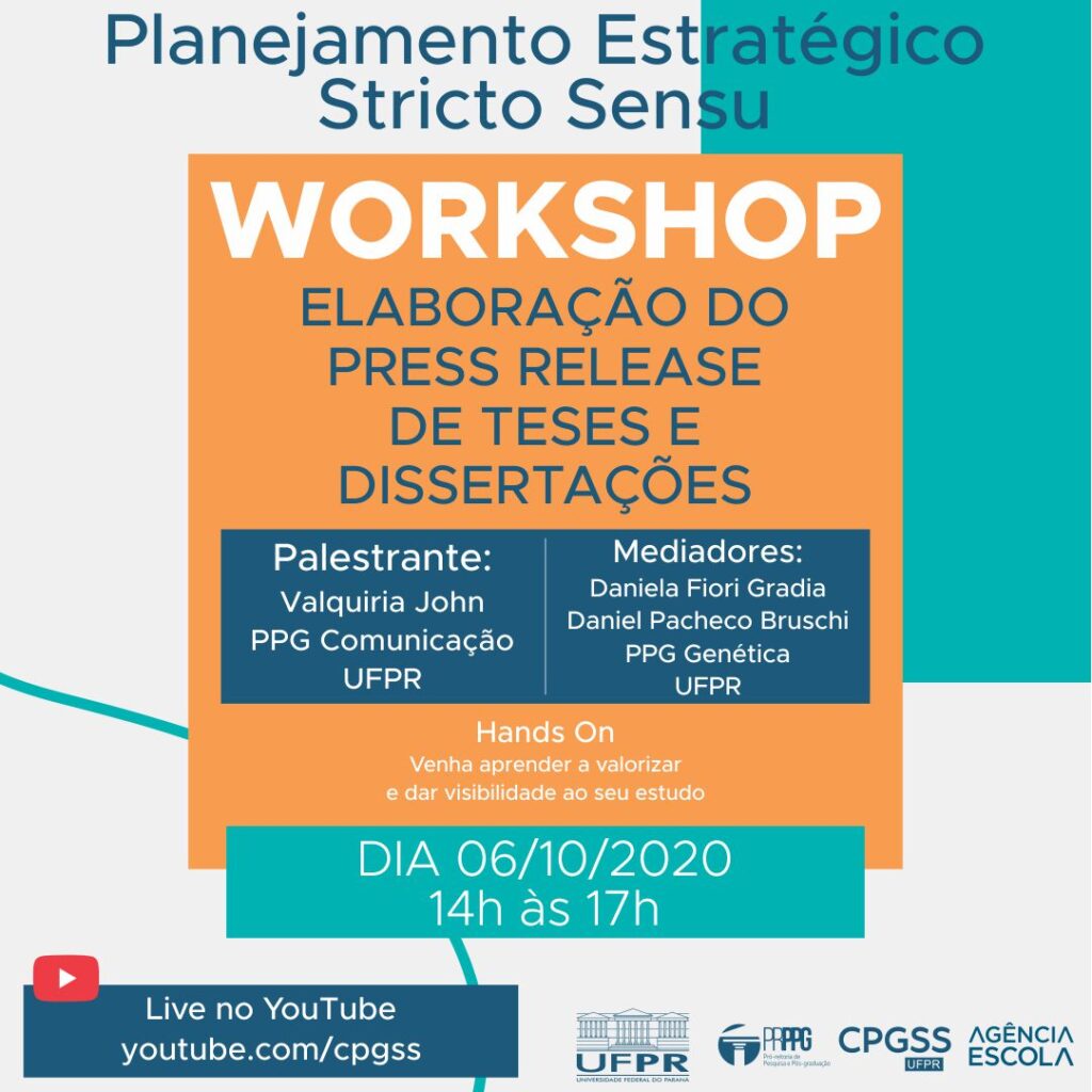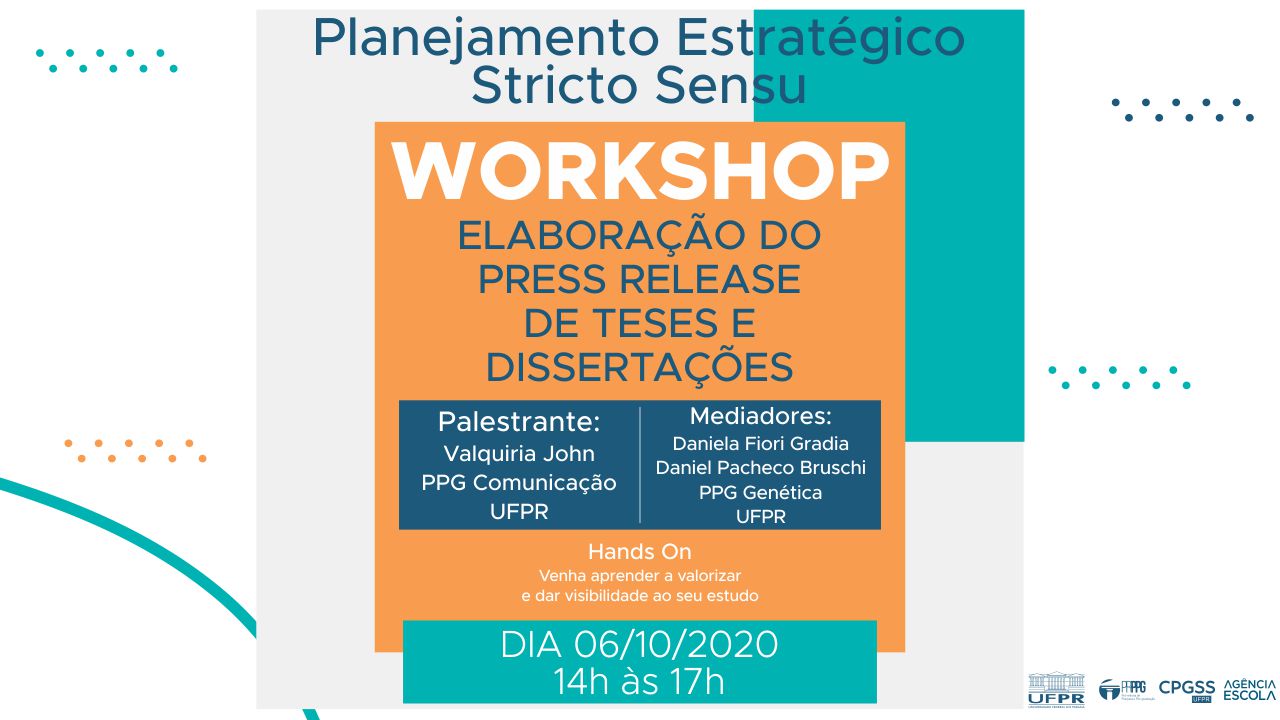 06/10/2020Workshop: Elaboração do Press Release de Teses e DissertaçõesValquiria John – PPG Comunicação – UFPR