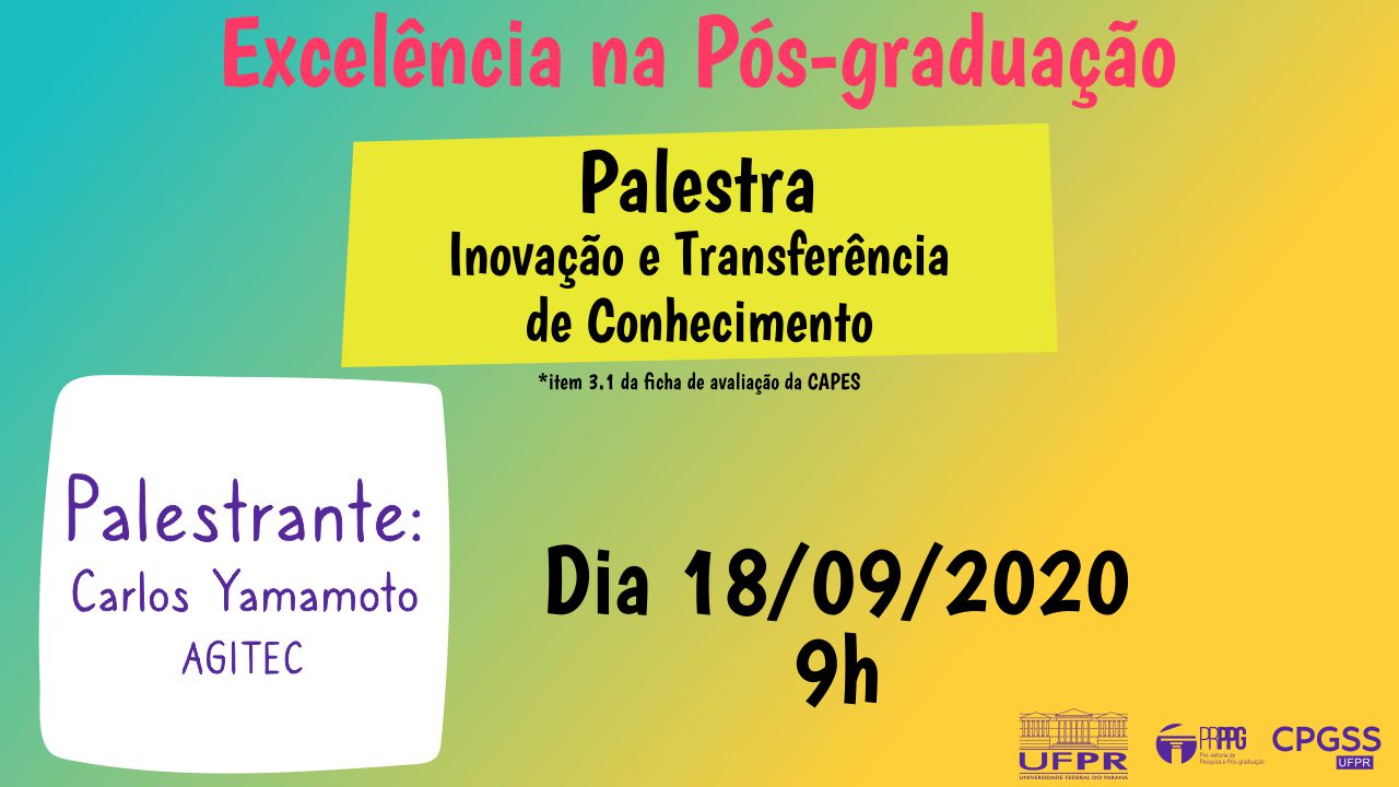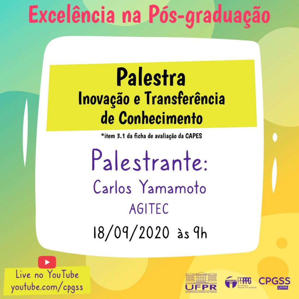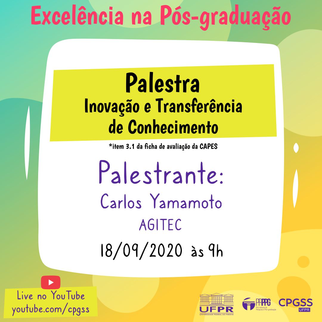 18/09/2020Palestra: Inovação e Transferência de ConhecimentoCarlos Yamamoto – AGITEC