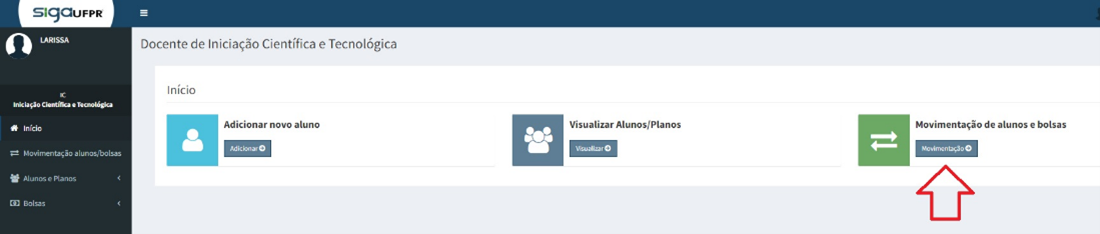 d) clicar em “Movimentação de alunos e bolsas”;