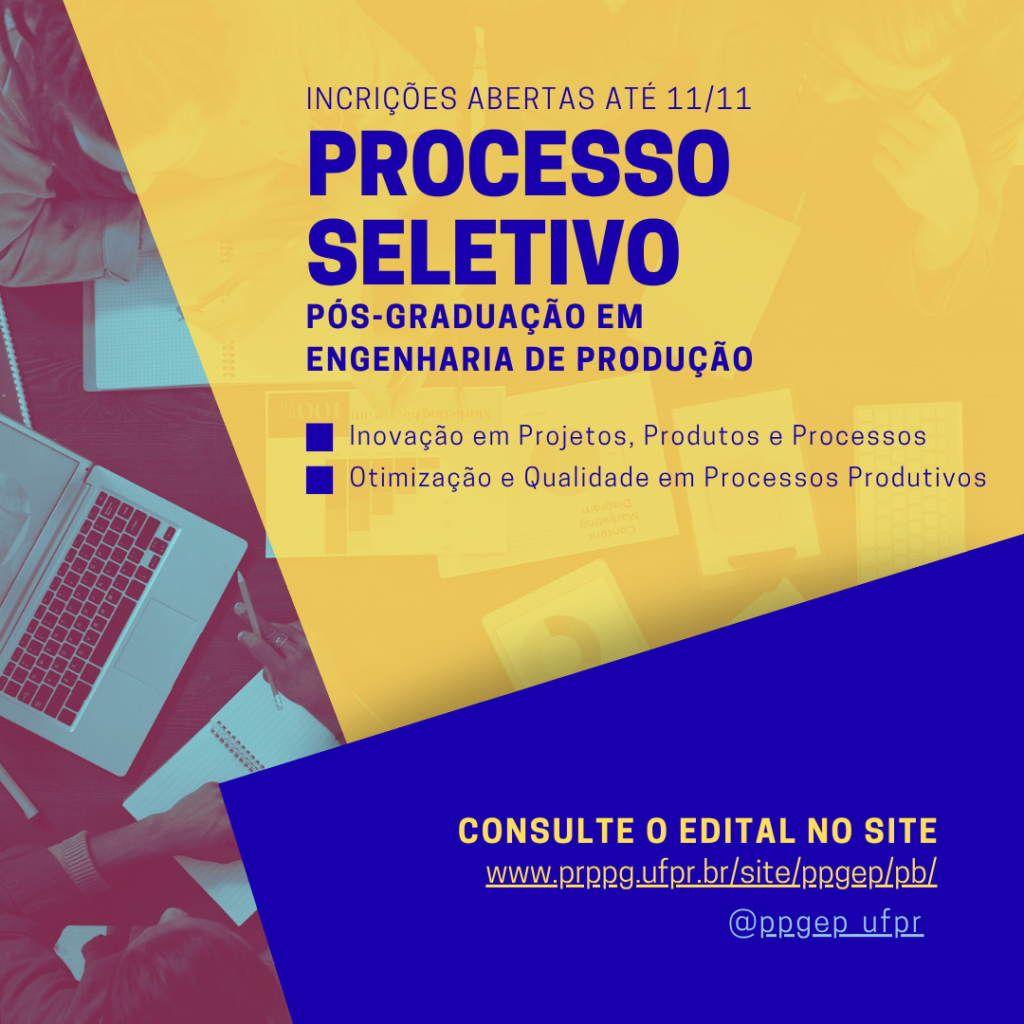 Confira o edital e todas as informações sobre o processo seletivo na página do programa neste link: https://www.prppg.ufpr.br/site/ppgep/pb/processo-seletivo/