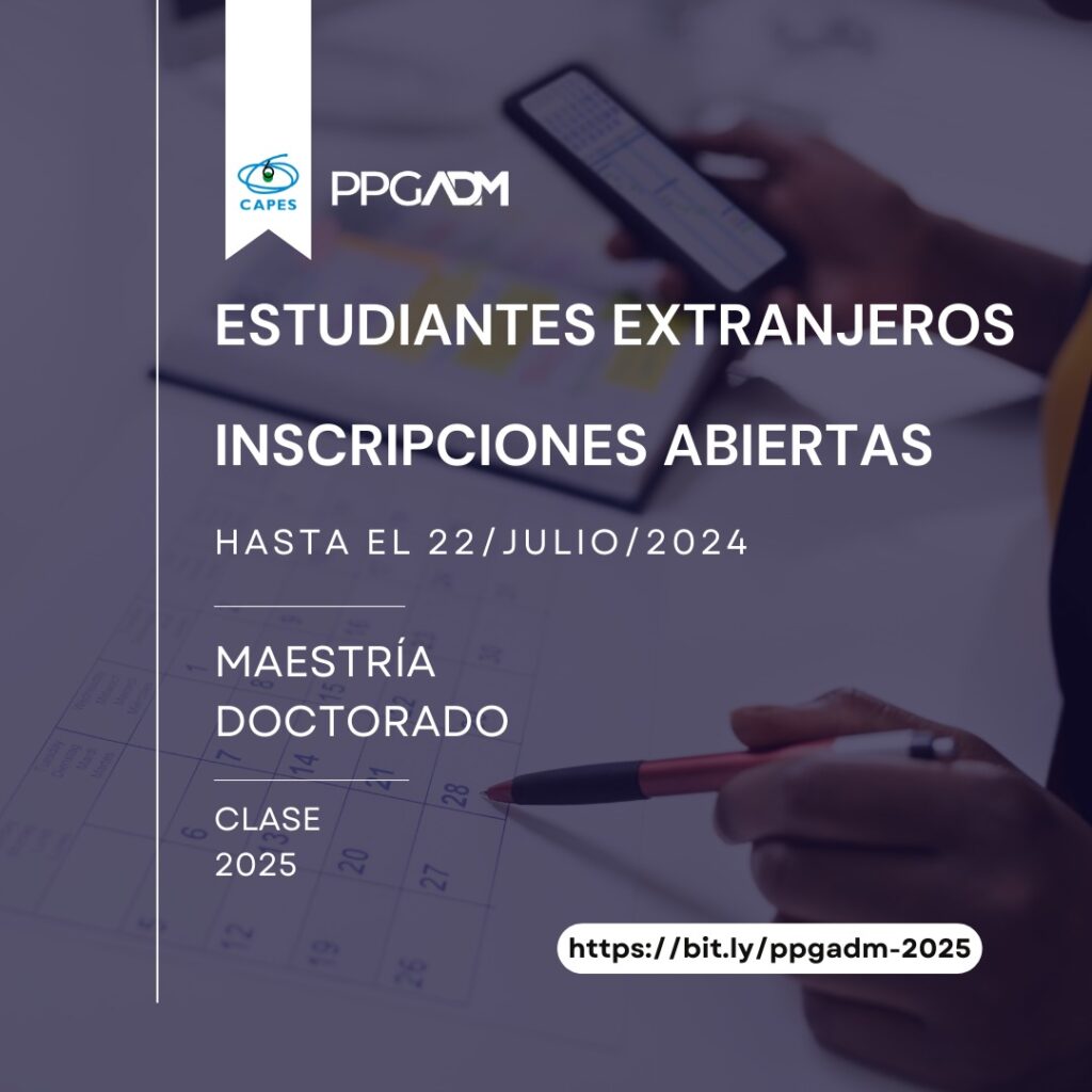 El PPGADM/UFPR anuncia el Edital nº 46/2023 del Proceso de Selección de Estudiantes Extranjeros – Maestría y Doctorado en Administración – para ingreso en 2025.