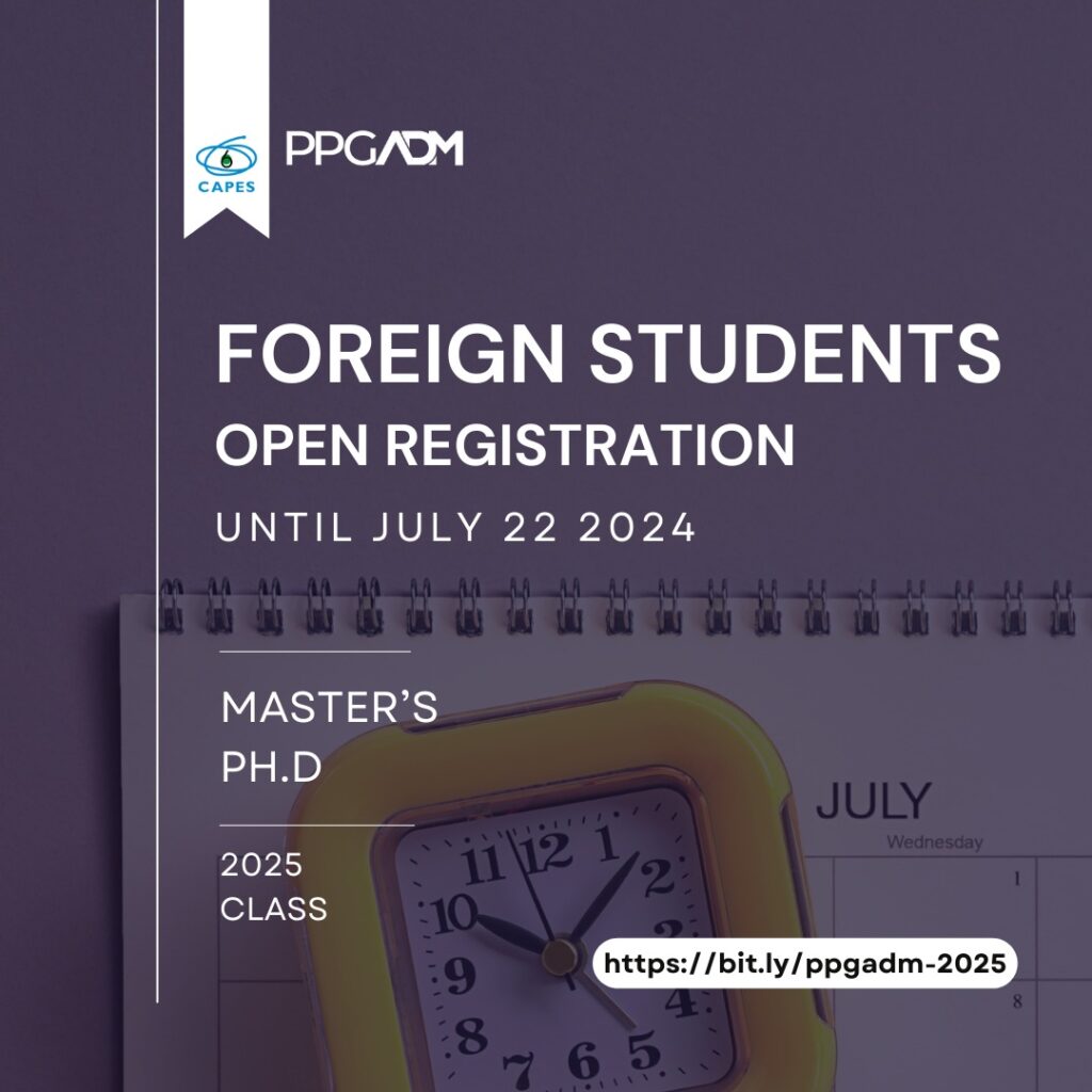 PPGADM/UFPR announces Notice No. 46/2023 for the Selection Process for Foreign Students – Master’s and Ph.D. in Administration – for admission in 2025.