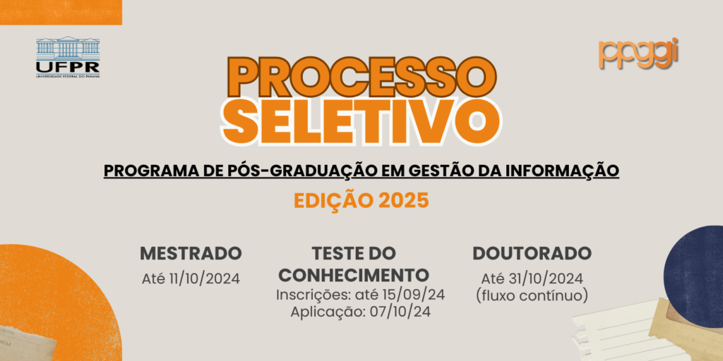 A Coordenação do Programa de Pós-Graduação em Gestão da Informação (PPGGI/UFPR) da Universidade Federal do Paraná (UFPR) lançou nesta segunda-feira (12), o edital 29/2024 referente ao Processo Seletivo 2025 – para o curso de Mestrado. São ofertadas 35 vagas no Mestrado dentro das linhas de pesquisa do Programa.