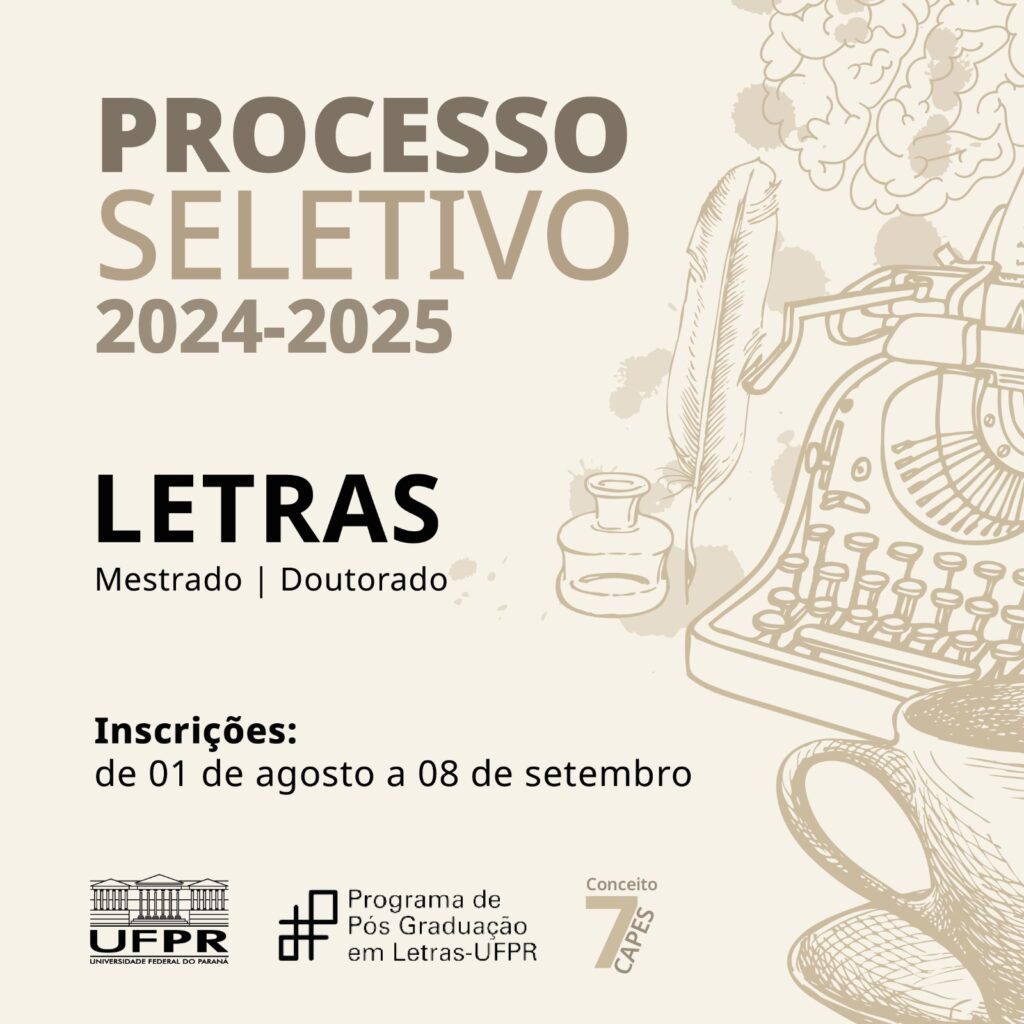 O Programa de Pós-Graduação em Letras (PGLET) da Universidade Federal do Paraná anuncia a abertura do processo seletivo de mestrado e doutorado para ingresso em 2025.
