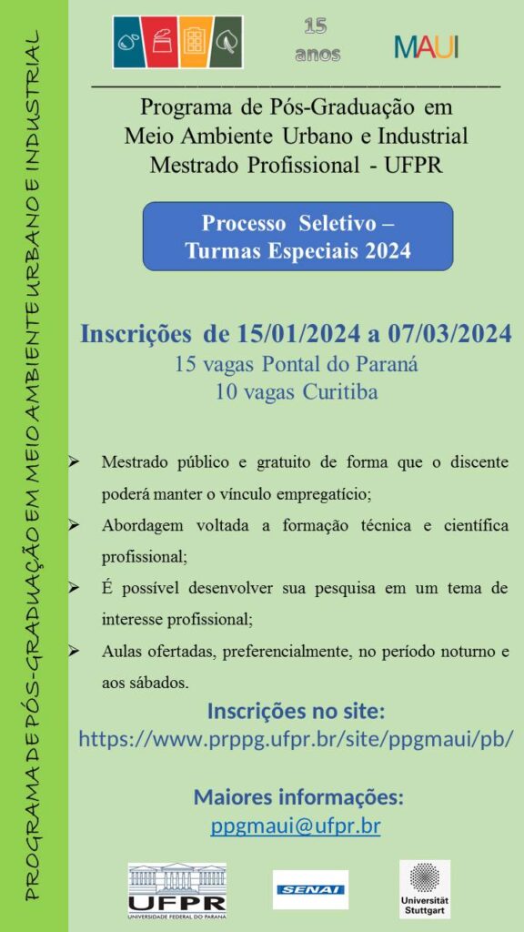 Mais informações e link para inscrições em: https://www.prppg.ufpr.br/site/ppgmaui/pb/processo-seletivo-2/edital-selecao_2024/