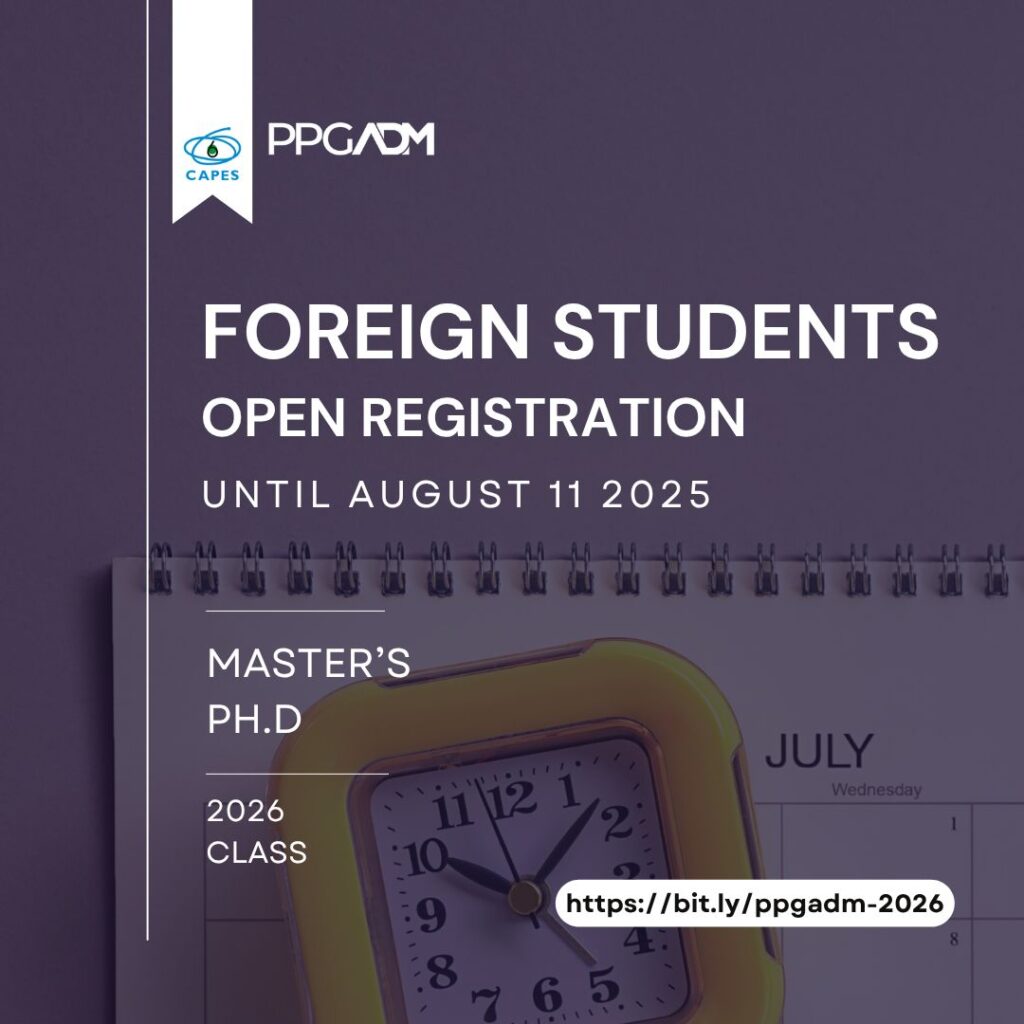 El PPGADM/UFPR anuncia el Edital nº 10/2025 del Proceso de Selección de Estudiantes Extranjeros – Maestría y Doctorado en Administración – para ingreso en 2026.