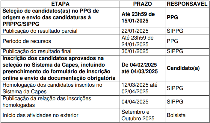 • Objetivo: Estabelecer os procedimentos para a indicação de candidatos para as bolsas de Doutorado Sanduíche no Exterior referentes ao Edital 26/2024 – CAPES/PDSE, no âmbito dos Programas de Pós-Graduação da UFPR.