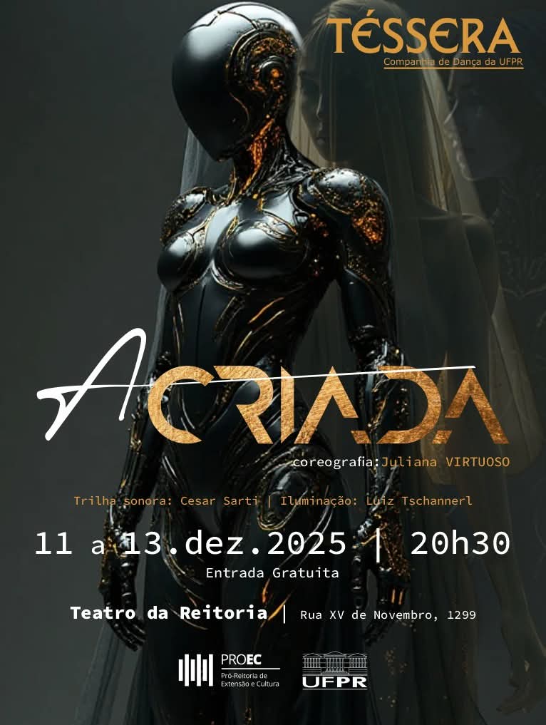 A Téssera Companhia de Dança da UFPR estreia na próxima semana o espetáculo ‘A Criada’. As apresentações acontecem nos dias 11, 12 e 13 de dezembro, no Teatro da Reitoria da UFPR, em Curitiba, com sessões gratuitas e classificação livre.