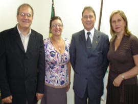 Professora Sandra Regina Kirschner Guimarães e o técnico Luis Carlos Setim com o Secretário do Traba