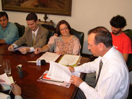 A assinatura do convênio reuniu representantes da CEU, AAE, DCE e UFPR no Gabinete da Reitoria