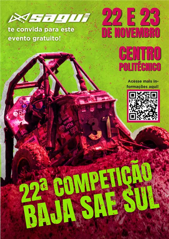 Promovido pela SAE Brasil, o evento reúne protótipos off-road construídos do zero por estudantes universitários e oferece ao visitante a oportunidade de acompanhar de perto o desempenho dos veículos nas provas. O público poderá circular pela área do evento, conhecer os projetos e observar o trabalho das equipes.
